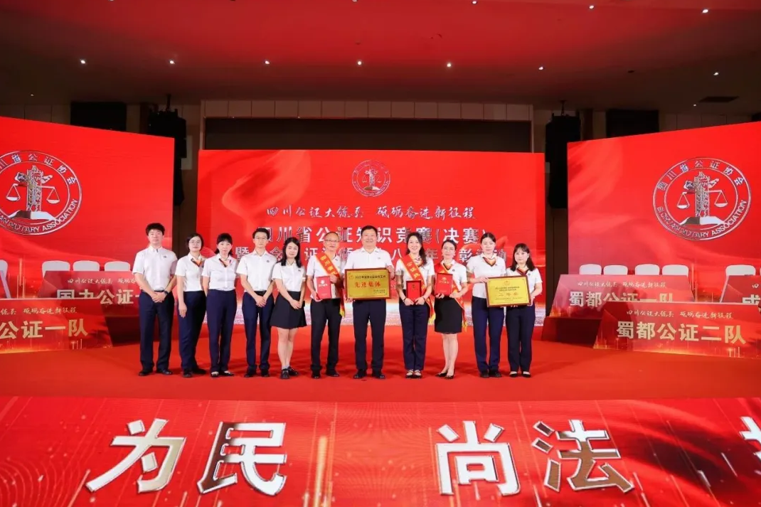 经过激烈角逐,蜀都公证一队荣获一等奖,国力公证一队、蜀都公证二队获得二等奖,成都公证一队、乐山公证队和律政公证一队获得三等奖。